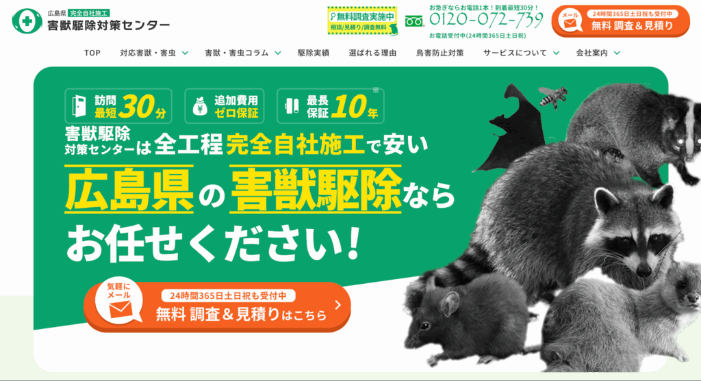 - 広島県でおすすめされる害獣駆除業者10選
