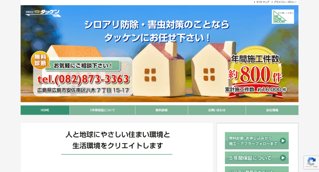 創業33年の歴史と実績を誇る『有限会社 タッケン』は、シロアリの予防・駆除を専門とする業者です。一般住宅から高い技術力が求められる仏閣寺院まで、幅広く対応しています。