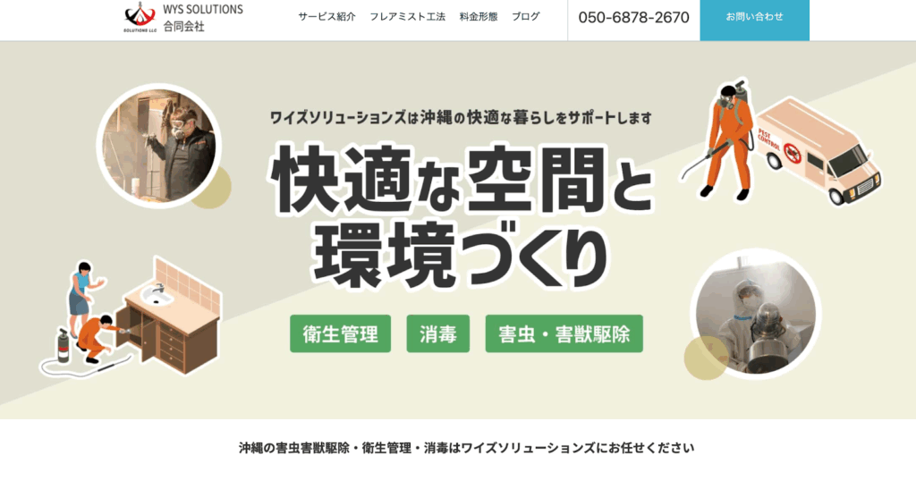 | WYS SOLUTIONS合同会社 | 沖縄県那覇市西2-12-1-804 ファミール西町ポートサイド | スポット駆除9,800円〜 | https://wys-solutions.net/ |