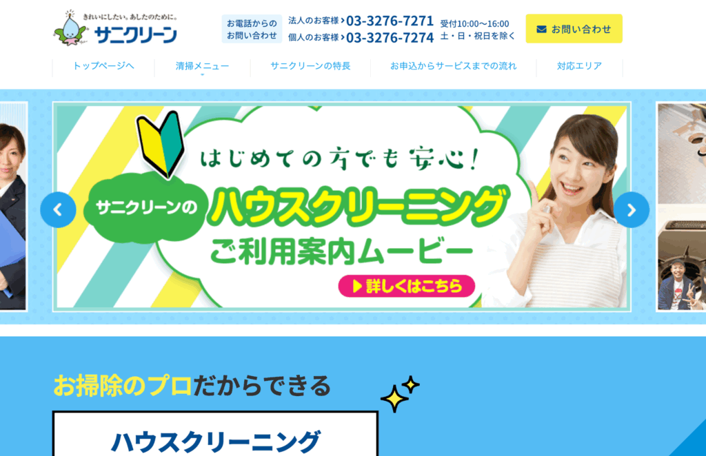 | 株式会社サニクリーン | 本社:東京都中央区日本橋二丁目11番2号-20階※沖縄県内の施工にも対応しています。 | ※公開無し | https://www.sanikleen.co.jp/housecleaning/ |
