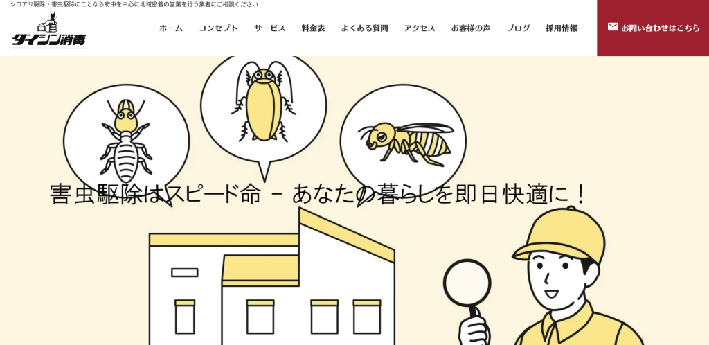 『ミヤコ消毒』は、地域密着型の駆除業者として東京都内で親しまれています。迅速かつ丁寧な作業が口コミで評判となり、個人宅から店舗、施設まで幅広く対応しています。駆除だけでなく、衛生管理や防疫指導にも力を入れており、駆除後の再発防止策も万全です。