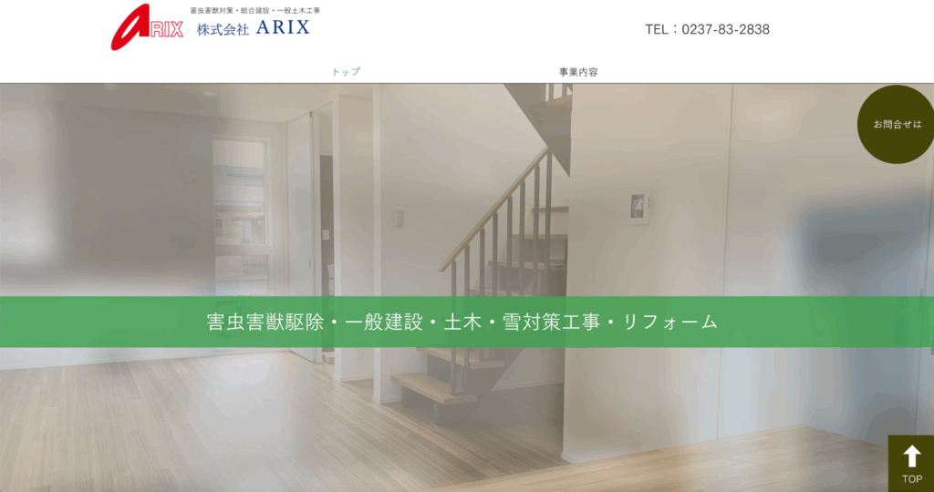 住宅修繕もできる『株式会社ARIX』は、「住宅に関わる幅広いサービス」を提供しています。ゴキブリやネズミ以外にも、シロアリや様々な害獣の駆除に対応しています。